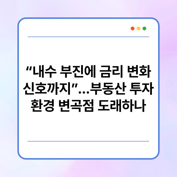 최근 내수 부진과 금리 변화 신호가 동시에 나타나면서, 부동산 투자 환경에 변곡점이 도래하고 있는 것으로 분석되고 있습니다. 이러한 변화는 투자자들에게 새로운 기회를 제공할 수 있는 동시에 리스크를 동반할 수 있습니다. 본문에서는 현재 부동산 시장의 동향과 금리 변화, 그리고 이들 간의 상관관계에 대해 자세히 살펴보겠습니다. 투자자들이 상황을 이해하고, 적절한 대응 방안을 모색할 수 있도록 필요한 정보를 전달하겠습니다.