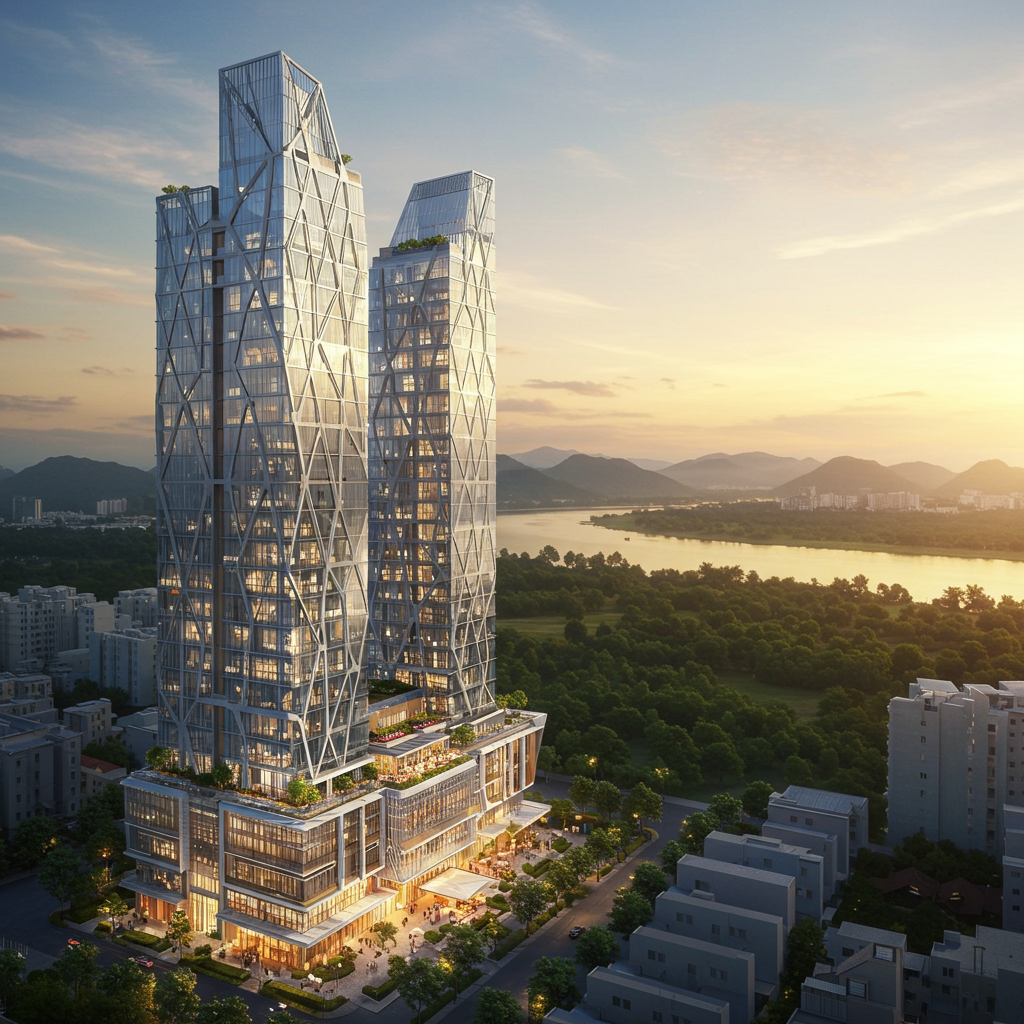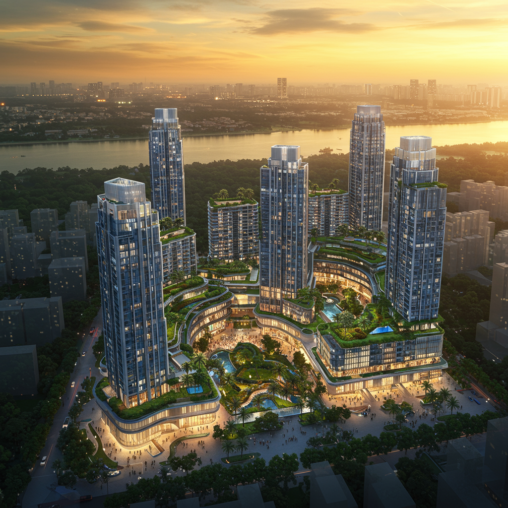 - 정보 2: 이 단지는 최고급 레지던스, 5성급 호텔, 명품 쇼핑몰, 국제 컨벤션 센터를 포함하며, 친환경 설계와 스마트 홈 기술을 전면 도입합니다.