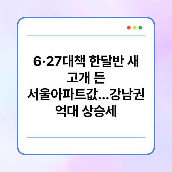 최근 6·27대책 이후 한 달 반이 지나면서 서울 아파트값 변화가 가시화되고 있습니다. 이로 인해 강남권 아파트의 가격 상승세가 다시금 주목받고 있습니다. 이러한 현상은 시장의 흐름과 소비자들의 심리를 반영하고 있으며, 그 배경을 분석할 필요성이 커지고 있습니다. 본 글에서는 서울 아파트값의 변동 원인과 강남권의 가격 상승세를 중심으로 심층적으로 알아보겠습니다.